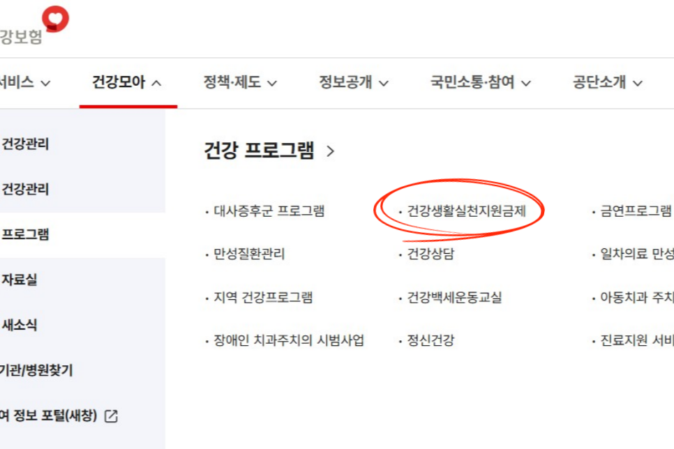 건강생활 메뉴 > 대상 여부 확인, 참여신청까지 한 번에!