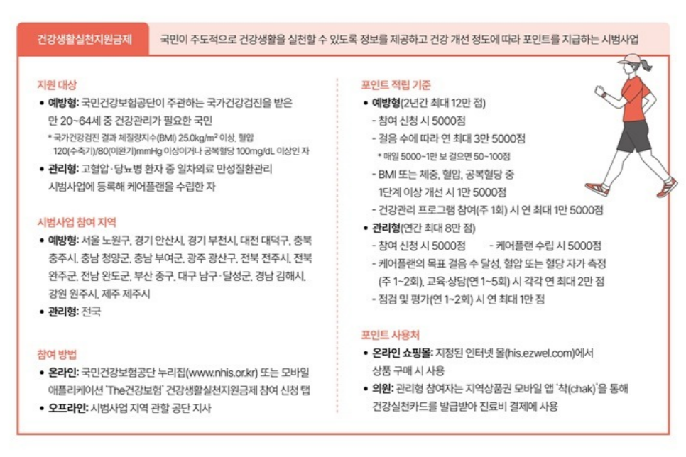 "걷기 웰빙? 건강생활실천지원금제!" 참여하고 포인트 쌓고~