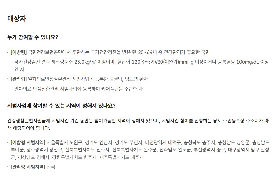 - 대상 : 고혈압·당뇨 등 만성질환자