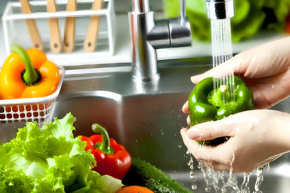 물이 튀어 채소나 과일에 닿는다면?